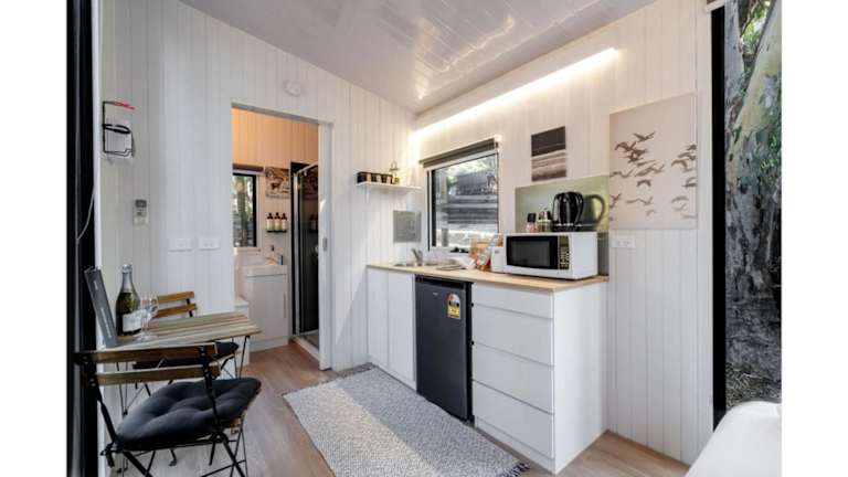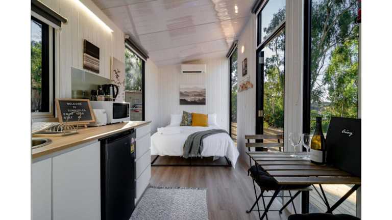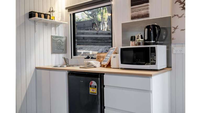 Das klimatisierte Ferienhaus im Summer Lea verfügt über ein separates Schlafzimmer, eine voll ausgestattete Küche mit Kühlschrank und Mikrowelle sowie ein Badezimmer. Handtücher und Bettwäsche werden gestellt, um Ihnen einen angenehmen Aufenthalt zu ermöglichen.