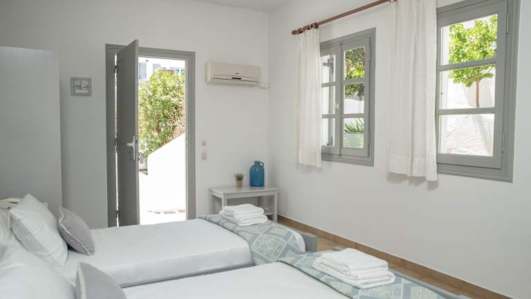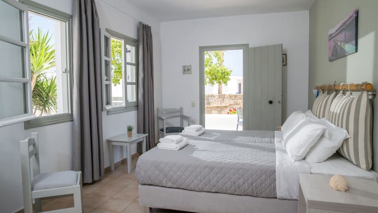 Die Zimmer im Summer Shades Hotel sind im traditionellen Stil der Kykladen gestaltet und bieten eine gemütliche und komfortable Atmosphäre. Alle Zimmer sind klimatisiert und verfügen über ein eigenes Badezimmer mit einem Haartrockner. Einige Zimmer bieten sogar eine private Veranda mit einem herrlichen Blick auf das Meer.