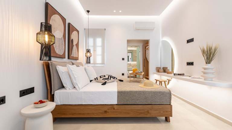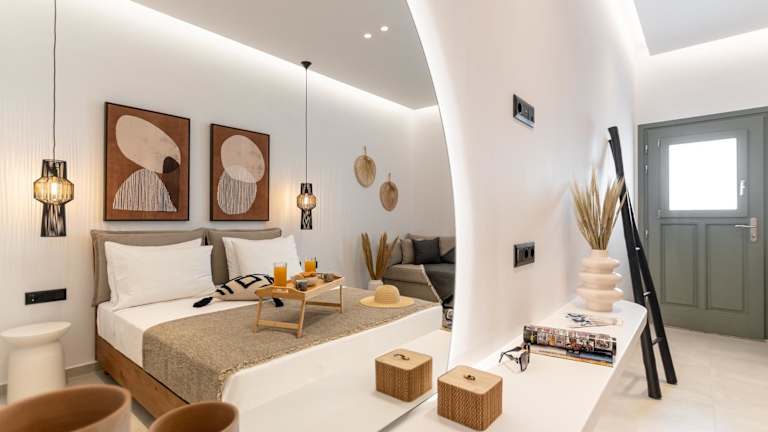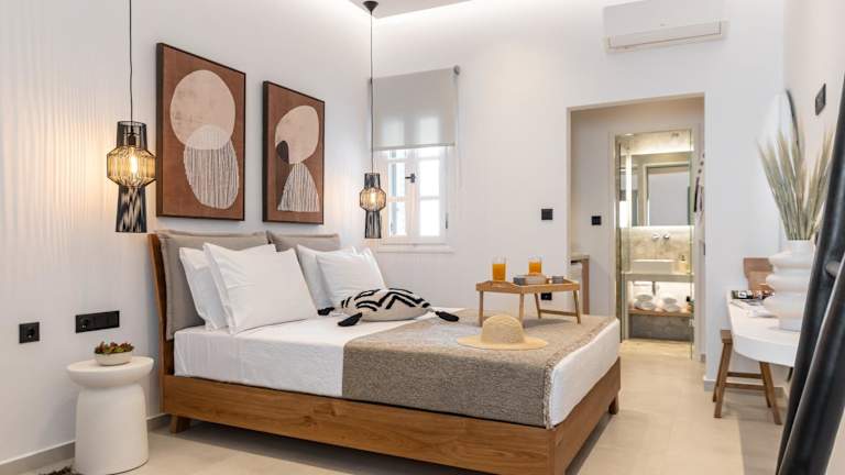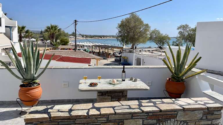 Die Summer Times Studios befinden sich in Naxos Chora und liegen nur 30 m vom Sandstrand von Agios Georgios entfernt. Die Lage ist ideal für Strandliebhaber, die die Sonne und das kristallklare Wasser der Ägäis genießen möchten. In der Umgebung gibt es auch eine gute Auswahl an Restaurants, Bars und Geschäften. Der lange Sandstrand von Agia Anna ist nur 6 km entfernt und das charmante Bergdorf Apeiranthos erreichen Sie nach einer kurzen Fahrt von 26 km. Kostenlose öffentliche Parkplätze stehen in der Nähe zur Verfügung.