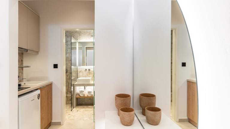 Die Studios in den Summer Times Studios sind traditionell eingerichtet und bieten einen charmanten und gemütlichen Aufenthalt. Die grünen Holzmöbel und der Fliesenboden verleihen den Zimmern eine authentische Atmosphäre. Jedes Studio verfügt über eine Küchenzeile mit Kühlschrank und Kochplatten, so dass Sie Ihre eigenen Mahlzeiten zubereiten können. Zur weiteren Ausstattung gehören eine Klimaanlage, ein Safe und ein TV. Die Studios bieten zudem einen herrlichen Blick auf die Ägäis. Die Badezimmer sind mit einer Dusche und einem Haartrockner ausgestattet.