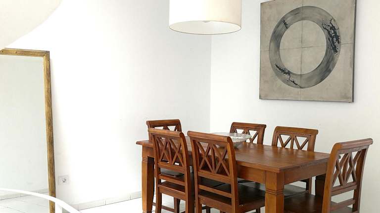 Das klimatisierte Ferienhaus verfügt über zwei Schlafzimmer, ein Wohnzimmer und eine voll ausgestattete Küche mit Kühlschrank und Kaffeemaschine. Es gibt zwei Badezimmer mit Dusche sowie einen Balkon. Handtücher und Bettwäsche werden bereitgestellt.