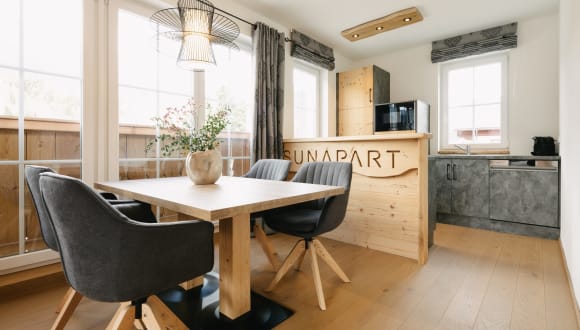 Sechs verschiedene Arten zu wohnen. Für zwei. Für vier. Für sechs. Für acht. Alle anders. Alle besonders. Alle gleich. Vollausgestattete Küche. Wasserkocher. Mikrowelle. Toaster. Alles da. TV’s in allen Zimmern. Bettwäsche. Handtücher. Toilettenpapier. Viel wenn, ohne aber. Geschirrspültabs. Salz & Pfeffer. Und natürlich ganz viel Detailliebe. Im Appartement befindet sich eine Nespresso Kaffeemaschine, die Grundausstattung an Kaffeekapseln von Bieder & Maier stellen wir gern zur Verfügung. Weitere Kaffeekapseln von Bieder & Maier können dann direkt im Apart33 (Check-in) erworben werden.