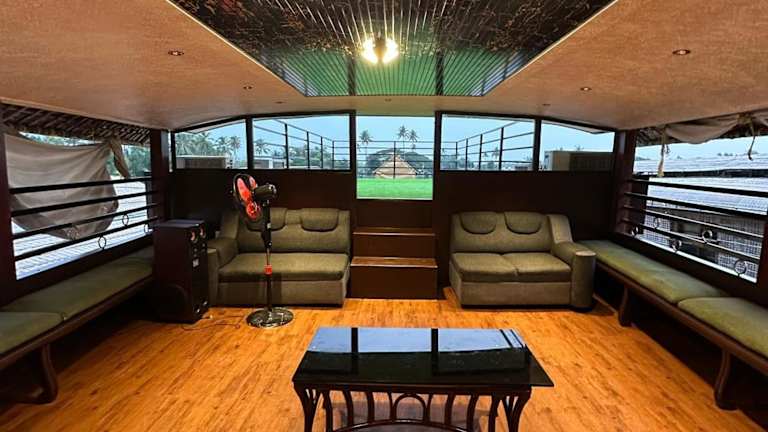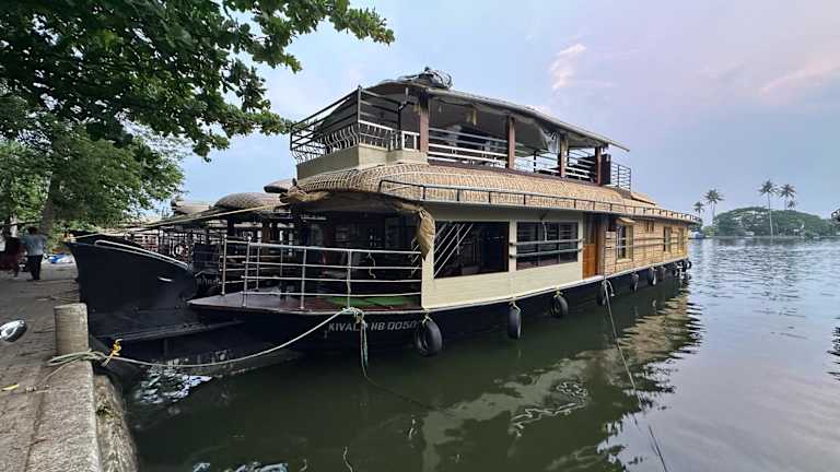 Die Sunbirds Premium House Boat at Alleppey Backwaters Kerala ist eine Unterkunft in Form eines Hauses auf einem Boot, das Gästen eine Terrasse und ein Restaurant bietet. Kostenloses WLAN ist in der gesamten Unterkunft verfügbar und ein Privatparkplatz steht vor Ort zur Verfügung.