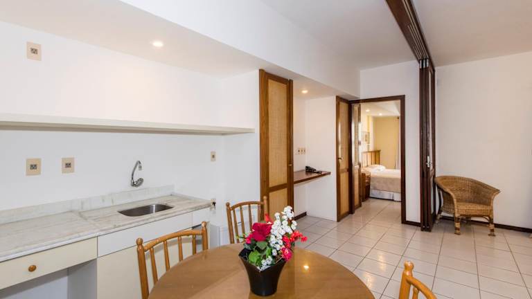 Die Zimmer sind klimatisiert und besitzen einen Balkon, ein Doppelbett, einen Safe sowie eine Minibar. Zu den weiteren Annehmlichkeiten gehören eine Mikrowelle, ein Telefon, ein TV-Gerät mit Kabelempfang und kostenfreies WLAN. Die Badezimmer sind mit einer Dusche oder Badewanne und einem Haartrockner ausgestattet. Einige Wohneinheiten bieten Meerblick oder sind mit einer Veranda/Pati ausgestattet.