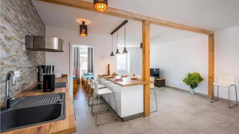 Suncani krovovi ist eine Ferienwohnung, die eine komfortable und praktische Übernachtungsmöglichkeit bietet. Die Unterkunft verfügt über eine Terrasse und ist in einem Nichtraucherbereich gelegen. Der Check-in ist von 16:00 bis 23:00 Uhr möglich, während der Check-out zwischen Mitternacht und 10:00 Uhr stattfindet. Es sind Haustiere erlaubt und es gelten bestimmte Altersanforderungen für den Check-in.