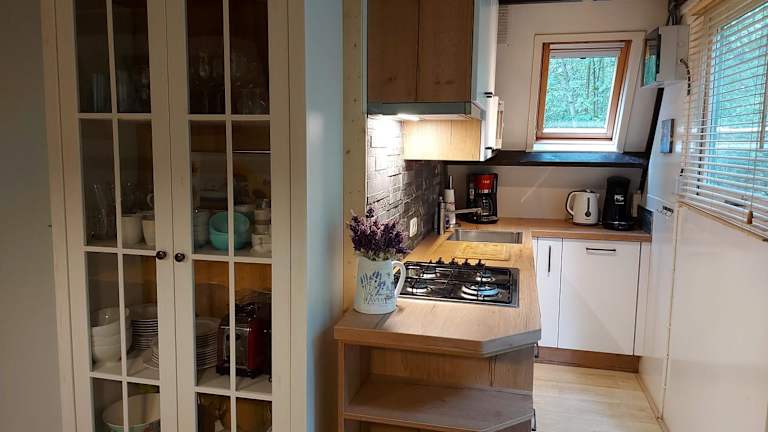 Das Chalet bietet einen Balkon und verfügt über ein Wohnzimmer mit Essbereich sowie drei Schlafzimmer. Die Küche ist ausgestattet mit Kühlschrank, Geschirrspüler und Mikrowelle. Des Weiteren gibt es ein Badezimmer mit Dusche, und Handtücher sowie Bettwäsche werden bereitgestellt.