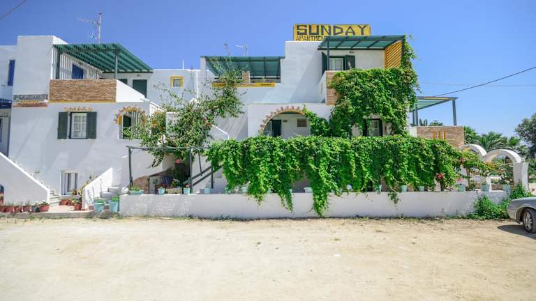 Die Sunday Studios bieten klimatisierte Studios und Apartments, die alle über einen möblierten Balkon mit Blick auf die Ägäis verfügen. Die Unterkünfte sind ideal für Selbstversorger, da sie alle über eine Küchenzeile mit Kühlschrank verfügen. Sie können sich also schnell und einfach eine Mahlzeit zubereiten. Die Studios sind mit einem Safe und einem Haartrockner ausgestattet, um Ihren Aufenthalt so angenehm wie möglich zu gestalten.