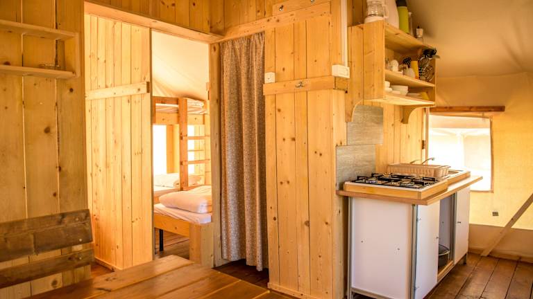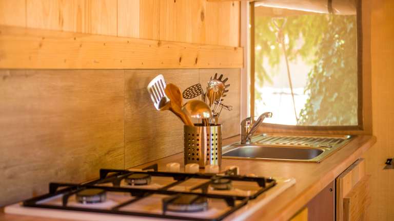 Das Sunflower Camping bietet zwei verschiedene Zeltkategorien, die alle über eine möblierte Terrasse und einen Essbereich verfügen. Die Zelte sind mit einer Küche oder Küchenzeile ausgestattet, die über ein Kochfeld, Küchenutensilien und einen Kühlschrank verfügt. In den höheren Kategorien stehen Ihnen zudem Safes zur Verfügung. Bettwäsche und Handtücher werden gestellt, so dass Sie sich um nichts kümmern müssen.