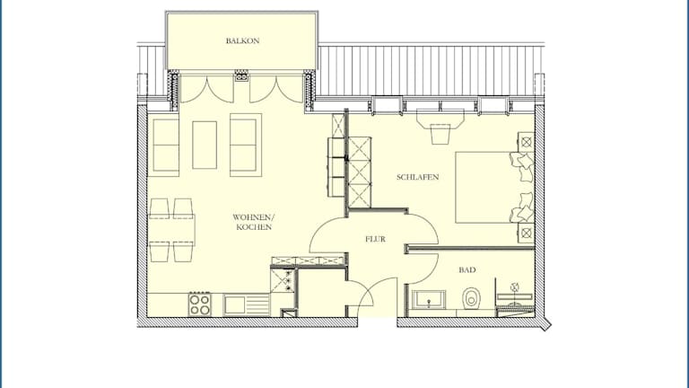 Die Ferienwohnung ist ausgestattet mit 1 Schlafzimmer, einem Wohnzimmer und einer voll ausgestatteten Küche, die einen Kühlschrank und einen Essbereich umfasst. Zudem steht ein Badezimmer zur Verfügung. Handtücher und Bettwäsche werden bereitgestellt.