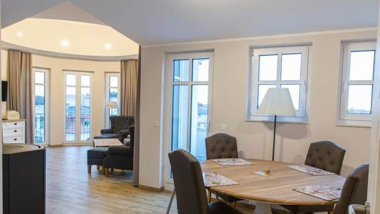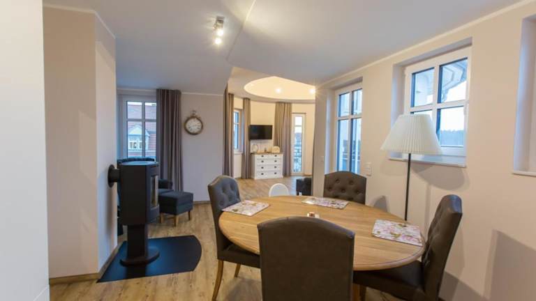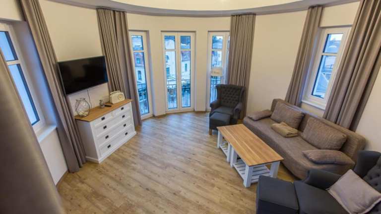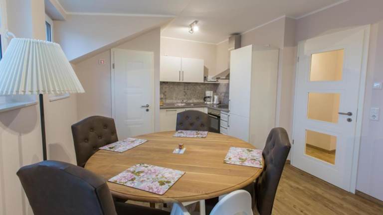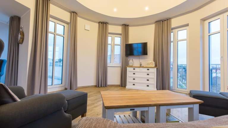 Die Ferienwohnung besteht aus zwei Schlafzimmern, einem Wohnzimmer, einer voll ausgestatteten Küche mit Kühlschrank und Kaffeemaschine sowie zwei Badezimmern, die mit Dusche und Haartrockner ausgestattet sind. Bettwäsche und Handtücher werden bereitgestellt. Es handelt sich um eine Nichtraucherunterkunft.