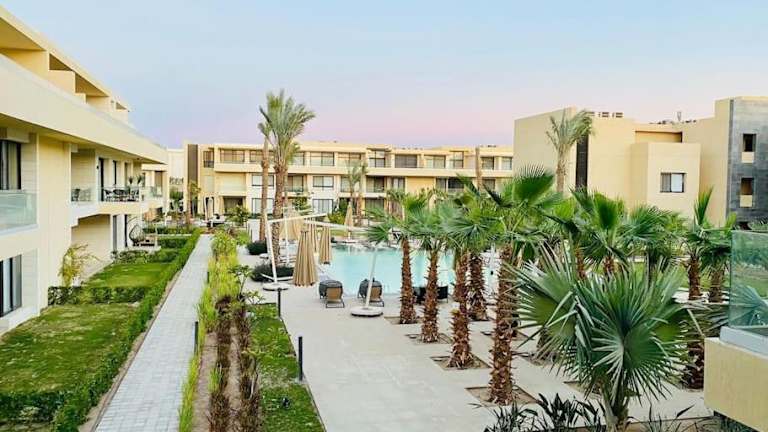 Sunny 1 BR Apt G cribs ElGouna with open View bietet Übernachtungsmöglichkeiten in einer Ferienwohnung mit eigenem Pool. Die Unterkunft verfügt über kostenloses WLAN und einen Balkon.