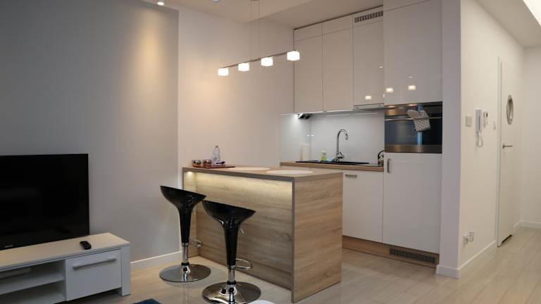Die Wohnung umfasst ein Wohnzimmer mit Kabel-Flachbild-TV, eine Küchenzeile mit Kühlschrank, Geschirrspüler und Ofen. Des Weiteren ist die Unterkunft mit einer Dusche, kostenlosen Pflegeprodukten und einem Haartrockner ausgestattet. Ein Balkon ist ebenfalls vorhanden.