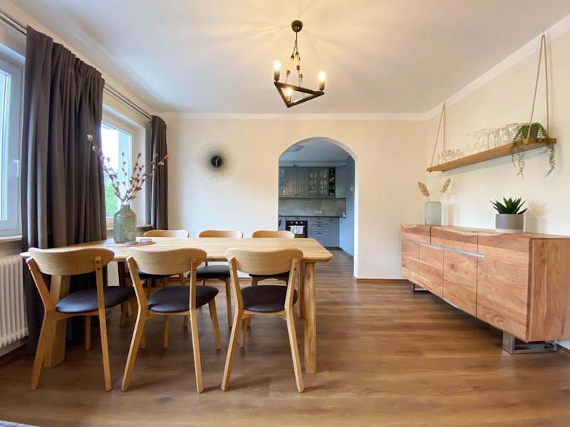 Das Apartment verfügt über 4 Schlafzimmer und 2 Badezimmer, die Platz für die ganze Familie bieten. Die Zimmer sind modern und komfortabel eingerichtet und bieten einen erholsamen Rückzugsort nach einem Tag voller Aktivitäten. Das Apartment verfügt außerdem über einen Flachbild-TV, einen Essbereich und eine voll ausgestattete Küche, in der Sie Ihre eigenen Mahlzeiten zubereiten können. Die Terrasse bietet einen herrlichen Blick auf die Berge und ist der perfekte Ort, um die frische Luft und die Sonne zu genießen.