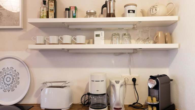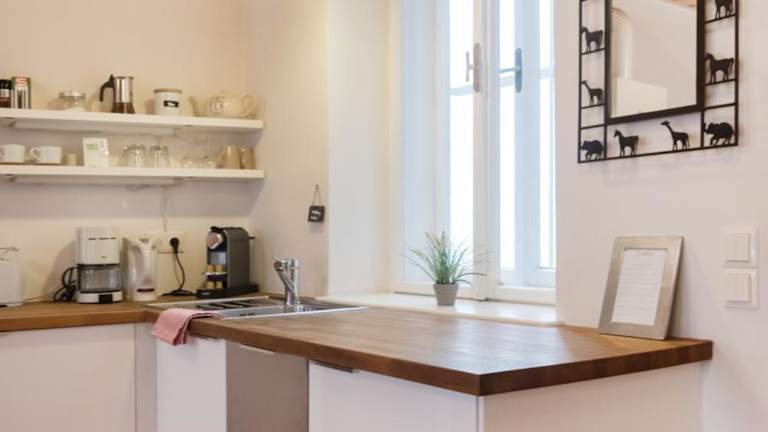 Jede Wohneinheit ist mit einer voll ausgestatteten Küche mit Geschirrspüler, Ofen, Kaffeemaschine, Herdplatte und Wasserkocher ausgestattet, um Selbstverpflegung zu ermöglichen.