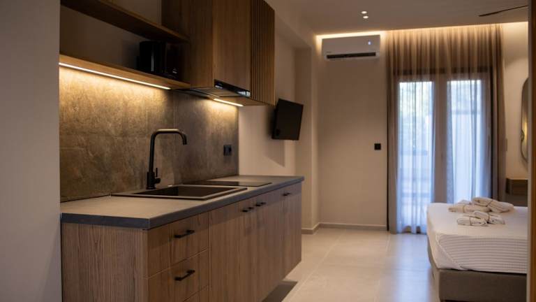 Alle Wohneinheiten sind mit einer voll ausgestatteten Küchenzeile, einem eigenen Badezimmer mit Dusche, kostenlosen Pflegeprodukten und einem Haartrockner ausgestattet. Kostenfreies WLAN sowie Klimaanlage sind ebenfalls vorhanden. Die Gäste haben Zugang zu einer Terrasse und genießen Blick auf den Außenpool.