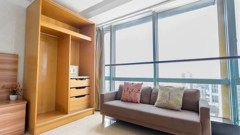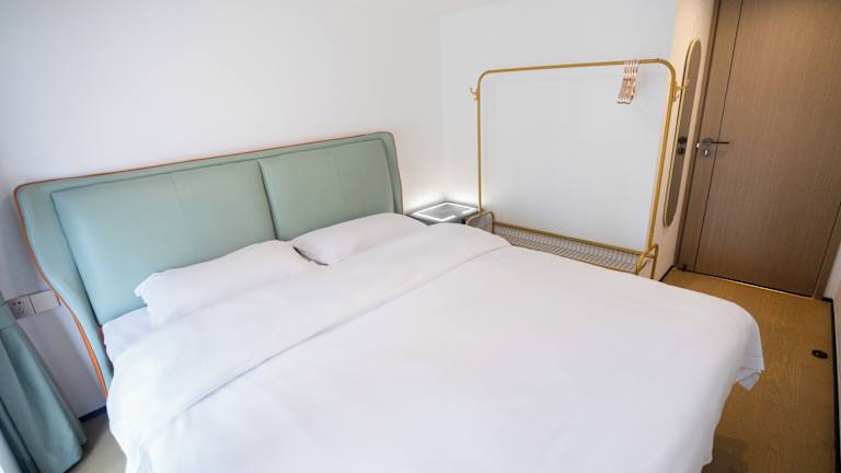 Die Zimmer sind schallisoliert und hell gestaltet und verfügen über deckenhohe Fenster mit Panoramablick auf die Stadt Guangzhou. Jedes Zimmer bietet einen Sitzbereich, Flachbild-TV, Schreibtisch sowie eine Küche mit Mikrowelle, Kühlschrank und Elektroherd. Kostenloses WLAN, Pflegeprodukte und ein Badezimmer mit Dusche sind ebenfalls in jedem Zimmer vorhanden.