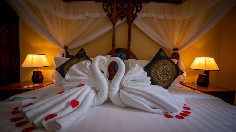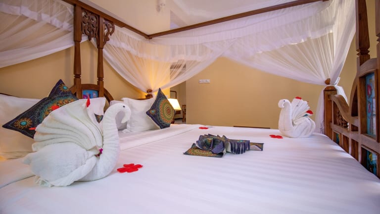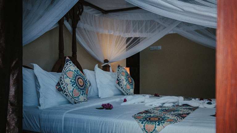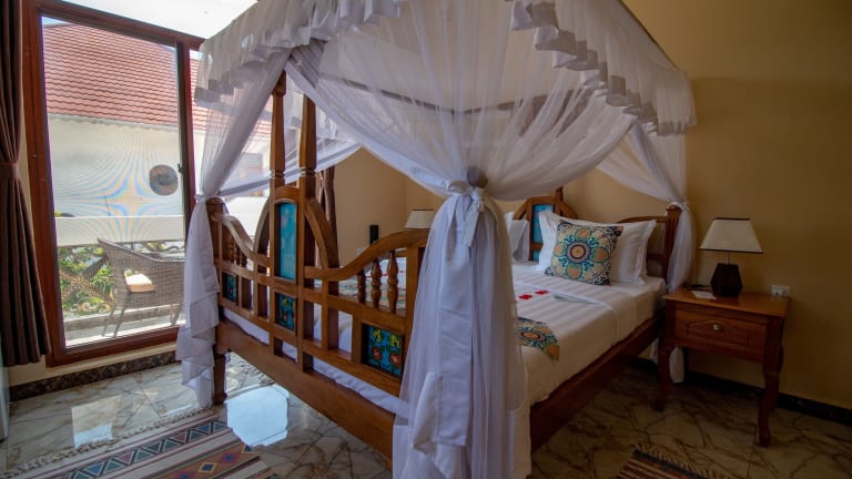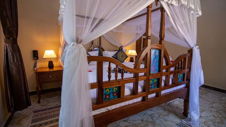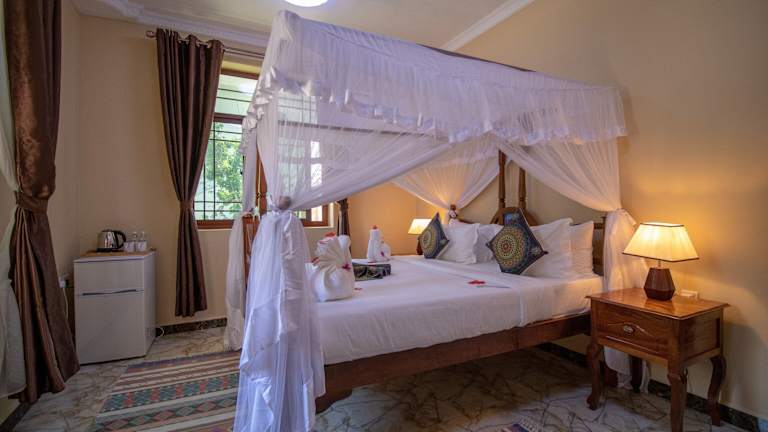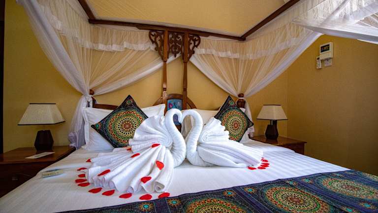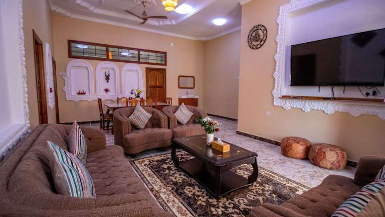 Die Unterkunft Sunny Palms Beach Bungalows liegt in Uroa, nur 100 m von einem öffentlichen Strand entfernt. Die Umgebung bietet Freizeitmöglichkeiten wie Radfahren und liegt 39 km vom Friedensmuseum Beit el Amani entfernt. Der nächstgelegene Flughafen, der Flughafen Sansibar, ist 40 km entfernt.