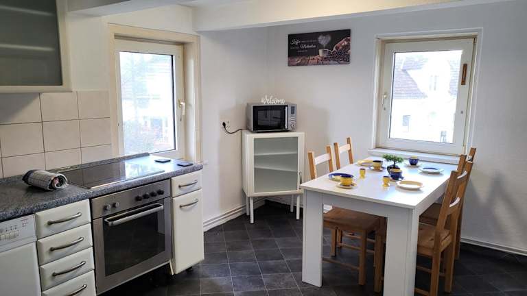 Eine Gemeinschaftsküche ist in der Unterkunft vorhanden, in der einige Wohneinheiten eine Küchenzeile mit Geschirrspüler, Ofen und Mikrowelle bieten.