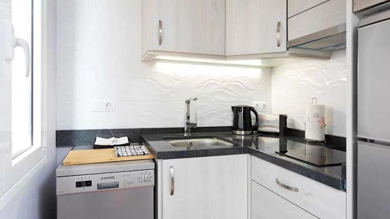 Die Ferienwohnung verfügt über eine komplett ausgestattete Küche mit einem Kühlschrank und einer Mikrowelle, in der Gäste ihre eigenen Mahlzeiten zubereiten können. Es sind keine Informationen über Verpflegungsmöglichkeiten wie Restaurants oder Frühstück vorhanden.