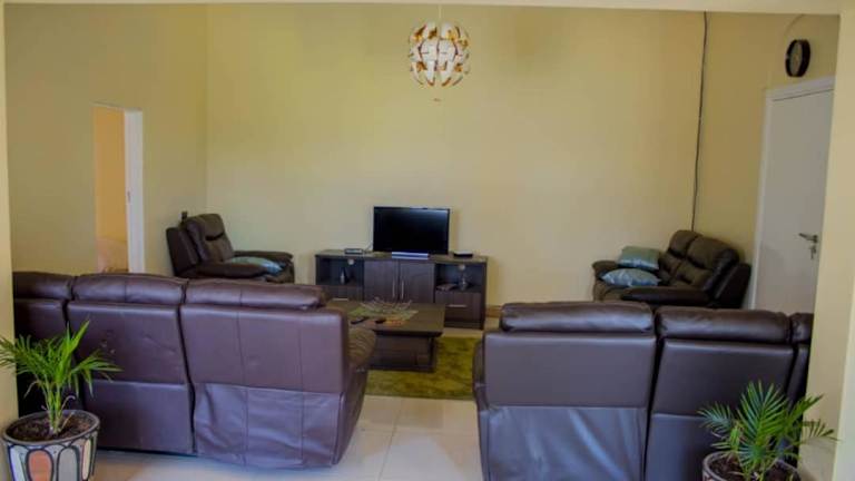 Die Lynm Residence in Harare ist eine ideale Unterkunft für Reisende, die einen entspannten Aufenthalt in einer ruhigen Umgebung suchen. Das geräumige Ferienhaus bietet 4 Schlafzimmer und eine voll ausgestattete Küche. Genießen Sie den schönen Gartenblick und kostenfreie Privatparkplätze. Beginnen Sie Ihren Tag mit einem leckeren englischen/irischen Frühstück und erkunden Sie die nahegelegenen Sehenswürdigkeiten wie den Botanischen Garten Harare. Der internationale Flughafen Robert Gabriel Mugabe ist nur wenige Kilometer entfernt und ein kostenpflichtiger Flughafentransfer steht zur Verfügung.