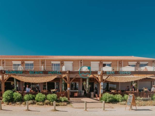 Das Sunrise Beach Hotel befindet sich in Gruissan, nur etwa 100 m vom Strand Plage des Chalets entfernt. In der näheren Umgebung liegen der Zoo Réserve de Africaine de Sigean in 33 km Entfernung und die Abtei Sainte-Marie de Fontfroide, die sich 34 km entfernt befindet. Weitere Sehenswürdigkeiten sind das Fonserannes Lock in 45 km und die Kathedrale Saint-Nazaire in 46 km. Der nächstgelegene Flughafen ist der Flughafen Beziers Cap d'Agde, welcher 57 km entfernt ist.