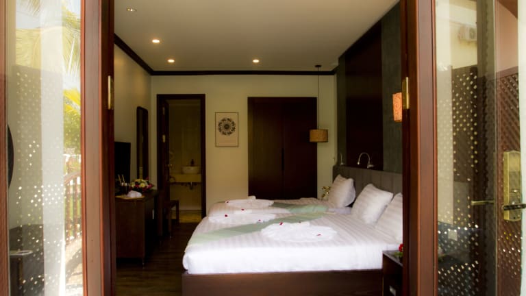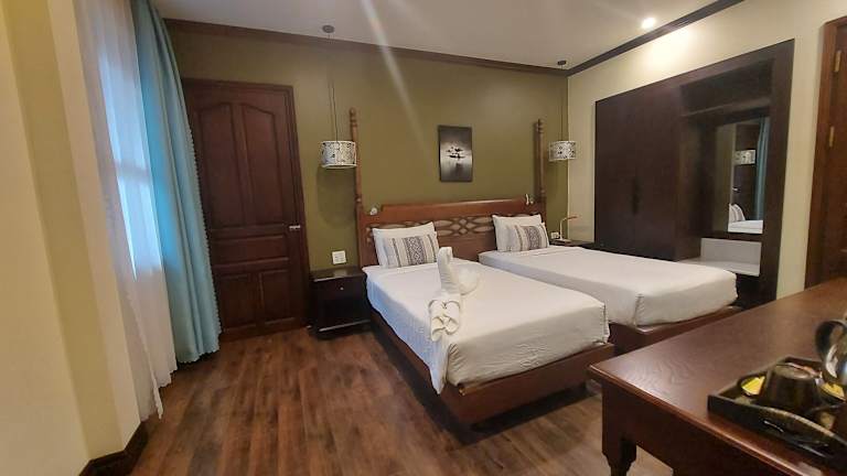 Das Sunrise Garden House - Luang Prabang ist eine ideale Unterkunft in Luang Prabang, die mit einem Außenpool, einem Garten und einer Terrasse für Entspannung und Komfort sorgt. Das Hotel bietet kostenloses WLAN und eine 24-Stunden-Rezeption für den besten Service. Die Zimmer sind klimatisiert und gut ausgestattet, und einige bieten einen Balkon oder Poolblick. Genießen Sie ein leckeres amerikanisches oder asiatisches Frühstück und erkunden Sie die nahegelegenen Sehenswürdigkeiten wie den Mount Phousy, den Nachtmarkt und das Nationalmuseum.
