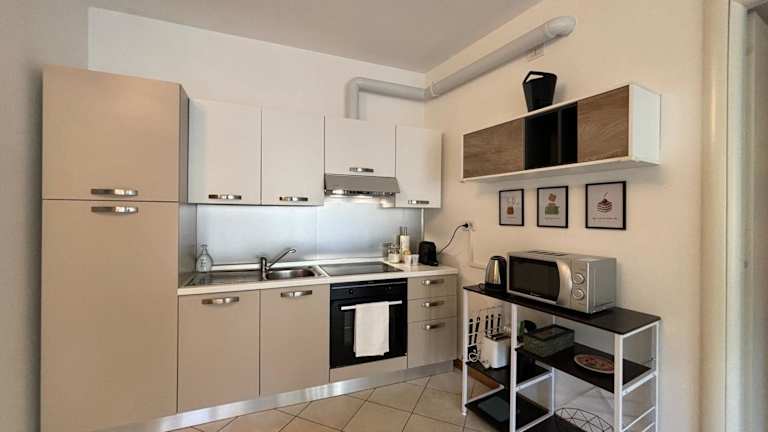 Die Ferienwohnung verfügt über ein Schlafzimmer, ein Wohnzimmer sowie eine voll ausgestattete Küche mit Kühlschrank und Kaffeemaschine. Zudem gibt es ein Badezimmer mit Bidet und Dusche. Handtücher und Bettwäsche sind ebenfalls vorhanden.