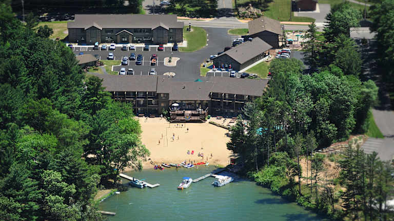• Die Lage direkt am Lake Delton ist ideal für Familienaktivitäten.