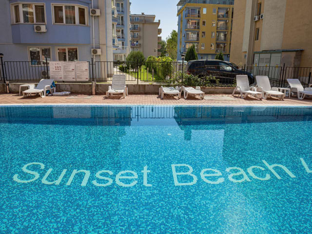 Das Sunset Beach 4 Apartment in Sonnenstrand ist eine ideale Unterkunft für einen entspannten Aufenthalt in Strandnähe. Mit kostenfreiem WLAN, einem saisonalen Außenpool und Klimaanlage bietet das Apartment alle Annehmlichkeiten für einen komfortablen Urlaub. Das Apartment verfügt über ein Schlafzimmer, ein Bad, eine voll ausgestattete Küche und einen Balkon mit Poolblick. Entspannen Sie auf der Sonnenterrasse oder erkunden Sie die nahegelegenen Sehenswürdigkeiten wie den Sonnenstrand und den Action AquaPark.