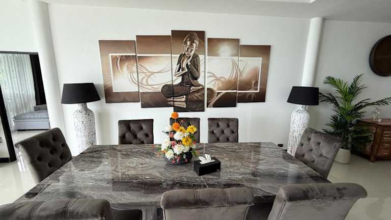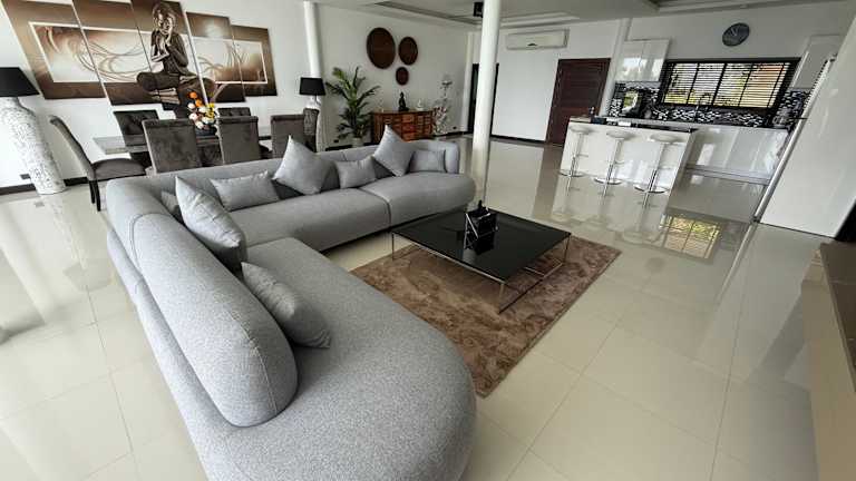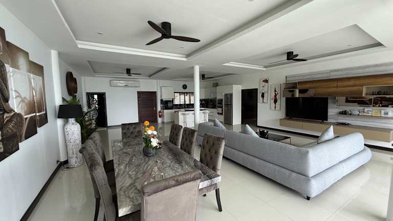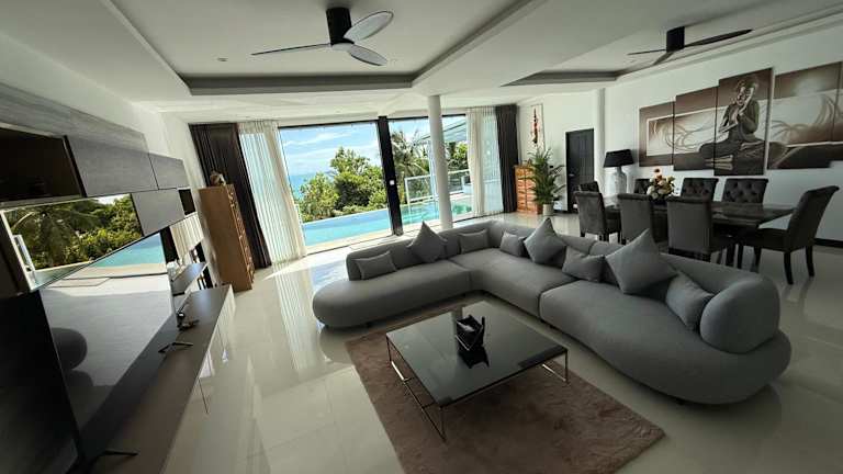 Die Villa umfasst 3 Schlafzimmer und 4 Badezimmer. Eine voll ausgestattete Küche sowie ein Essbereich sind vorhanden. Zur Ausstattung gehören Bettwäsche, Handtücher und ein Flachbild-TV mit Satellitenkanälen. Auf der Terrasse kann man den Meerblick genießen.