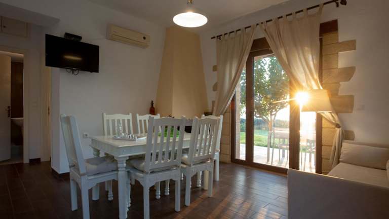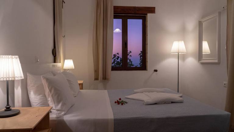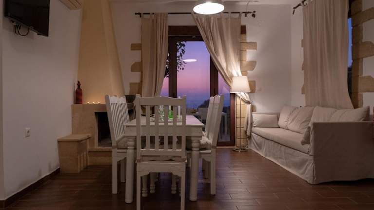 Die Sunset Villas bieten Ihnen traditionelle Steinhäuser mit einem authentischen Charme. Die Unterkünfte sind mit dunklen Holzmöbeln eingerichtet und in erdigen Farben gehalten, um eine gemütliche Atmosphäre zu schaffen. Jede Villa verfügt über einen Balkon oder eine Terrasse, von der aus Sie den herrlichen Ausblick genießen können. Die klimatisierten Villen bieten zudem einen Wohnbereich mit einem Kamin, der in den kühleren Abenden eine warme und einladende Atmosphäre schafft. Die voll ausgestattete Küche mit Essbereich ermöglicht es Ihnen, Ihre eigenen Mahlzeiten zuzubereiten. Zur weiteren Ausstattung gehören ein Flachbild-Sat-TV und eine Waschmaschine, um Ihnen einen angenehmen Aufenthalt zu garantieren.