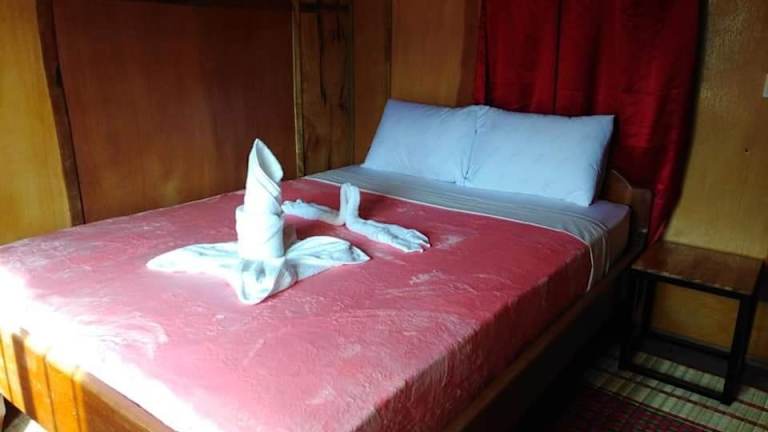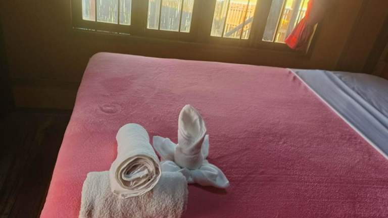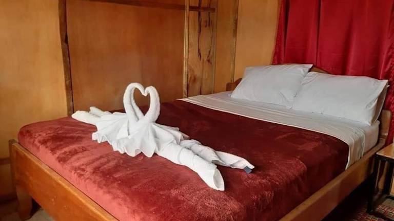 Das Hotel ist komplett aus Holz, was es sehr romantisch macht, aber dafür hört man auch jeden Schritt. Die nette Besitzerin lebt dort mit ihren 3 Söhnen und kocht fast täglich irgendein anderes Gericht, welches man gegen eine Minimalgebühr verzehren darf. Fast immer sehr lecker