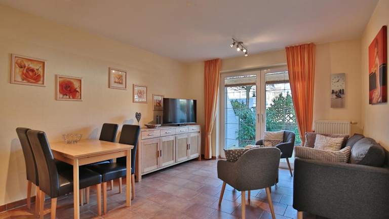 Die Sunshine-Residenz Sunshine Residenz Appartement 2 bietet eine Unterkunft im Erdgeschoss mit kostenlosem WLAN und einer Terrasse. Die Unterkunft ist privat und ermöglicht Gästen die Nutzung eines kostenlosen Privatparkplatzes. Das Mindestalter für den Check-in beträgt 18 Jahre, und es sind Haustiere erlaubt, wobei möglicherweise Gebühren anfallen. Veranstaltungen wie Junggesellenabschiede sind nicht gestattet, und eine Zahlung per Überweisung ist vor der Anreise erforderlich.