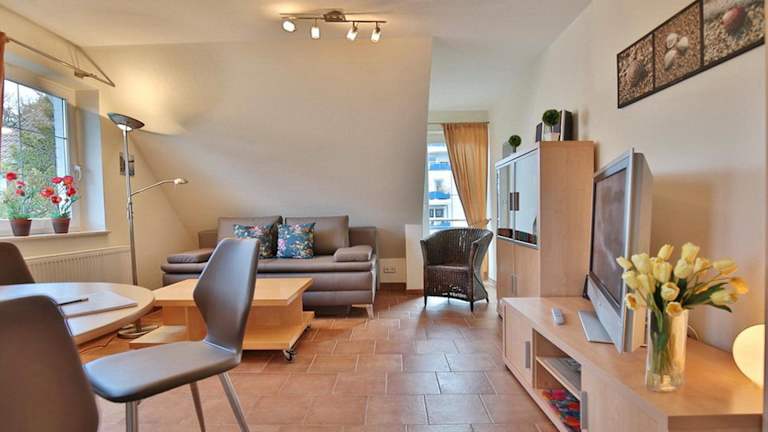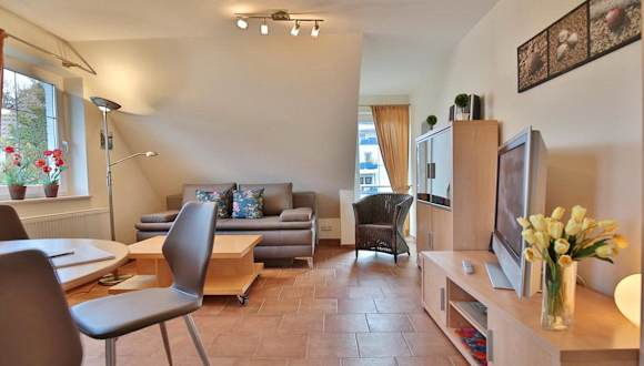 Die Wohnung bietet einen Balkon, ein Schlafzimmer, ein Wohnzimmer sowie eine gut ausgestattete Küche mit Kühlschrank und Geschirrspüler. Es stehen Unterhaltungsmöglichkeiten wie TV, Blu-ray-Player, DVD-Player und CD-Player zur Verfügung. Es wird darauf hingewiesen, dass Bettwäsche und Handtücher nicht im Zimmerpreis enthalten sind und gegen Aufpreis gemietet werden können.