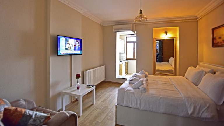 Die Sunshine Taksim Suite bietet eine komfortable und klimatisierte Unterkunft im Herzen von Istanbul. Mit ihrer zentralen Lage sind beliebte Sehenswürdigkeiten wie der Galataturm und der Taksim-Platz bequem zu Fuß erreichbar. Die voll ausgestatteten Küchen in den Wohneinheiten ermöglichen es den Gästen, ihre eigenen Mahlzeiten zuzubereiten, während das kostenfreie WLAN in allen Bereichen der Unterkunft den Gästen eine gute Konnektivität bietet.