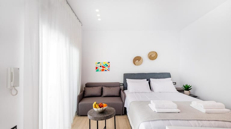 Sunwaves Beach studio I bietet Unterkünfte direkt am Strand, umgeben von einem Garten mit eigener Terrasse und kostenlosem WLAN. Die Unterkunft wird von einem privaten Gastgeber betrieben und hat strikte Richtlinien gegen Feiern und Veranstaltungen.