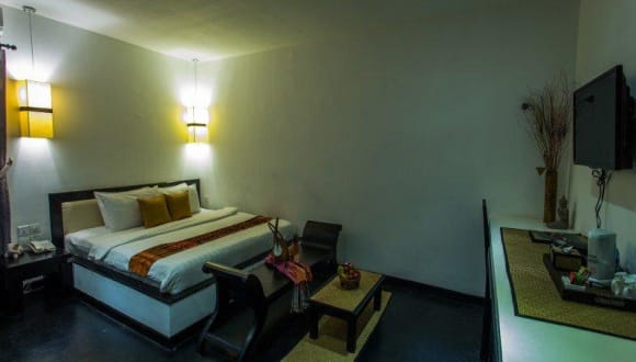 Das Suorkear Boutique Hotel and Spa in Siem Reap bietet seinen Gästen einen entspannten und komfortablen Aufenthalt. Das Hotel verfügt über einen Außen- und Innenpool, einen Wellnessbereich und freundliches Personal, das Ihnen bei allen Fragen und Anliegen behilflich ist. Die Zimmer sind gemütlich eingerichtet und verfügen über Annehmlichkeiten wie Klimaanlage, Safe und Minibar. Genießen Sie köstliche Speisen im Restaurant und entspannen Sie am Pool oder im Spa-Bereich.