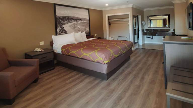Die Zimmer im Super 8 by Wyndham Cypress sind mit Teppichböden, Klimaanlage und Heizung ausgestattet. Sie verfügen über Queensize-Betten, Kingsize-Betten oder Sofabetten, einen Safe, einen Schreibtisch, einen Kühlschrank, eine Mikrowelle sowie eine Tee-/Kaffeemaschine. Ein Haartrockner, ein Fernseher mit Kabel-/Satellitenempfang und WLAN sind ebenfalls vorhanden. Die Badezimmer sind mit einer Dusche und einer Whirlwanne ausgestattet und bieten Kosmetikartikel.