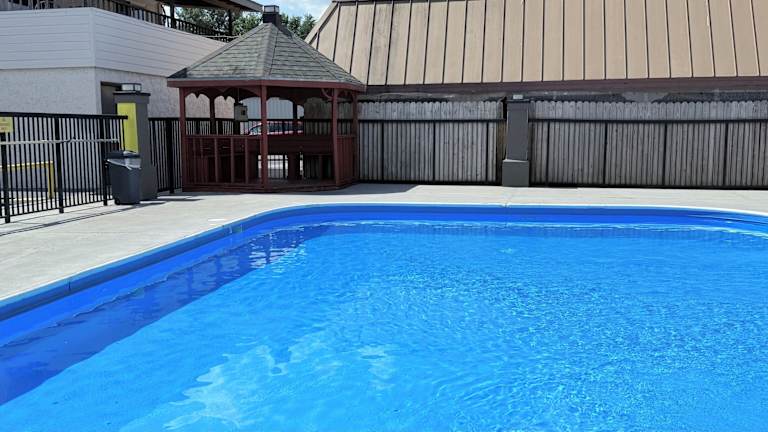 Das Hotel bietet einen saisonalen Außenpool, der mit Salzwasser gefüllt ist, und Bereiche zum Sonnenbaden mit Liegestühlen. Für sportliche Aktivitäten steht ein Fitnessraum zur Verfügung. Die Sauna bietet zusätzlich Optionen zur Entspannung.