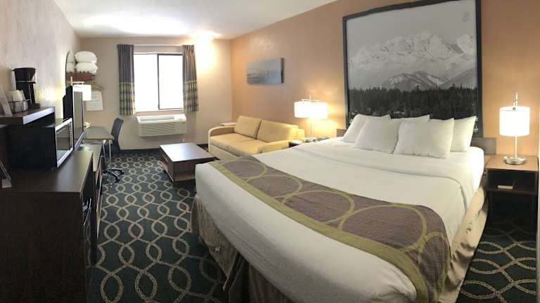 Das Super 8 by Wyndham Port Angeles at Olympic National Park ist ein komfortables Motel in Port Angeles, nur 3,2 km vom Olympic-Nationalpark entfernt. Die Unterkunft bietet kostenfreies WLAN und ein tägliches kontinentales Frühstück. Mit einer 24-Stunden-Rezeption, einem Waschsalon und kostenlosen Parkplätzen bietet das Motel alle Annehmlichkeiten, die Sie für einen angenehmen Aufenthalt benötigen. Die Zimmer sind klimatisiert und verfügen über einen TV mit über 70 Kanälen. Ein Businesscenter mit Fax- und Kopierservices steht Ihnen ebenfalls zur Verfügung. Genießen Sie das kostenfreie Frühstück, das eine Auswahl an Speisen wie Kaffee, Tee, Säfte, Joghurt, Cerealien, Waffeln, Toast, hart gekochte Eier, Zimtschnecken und frisches Obst bietet.