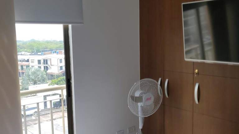 SUPER APARTAMENTO AMOBLADO, Norte de Neiva bietet einen Balkon mit Bergblick sowie Zugang zu einem eigenen Pool. Die Ferienwohnung ist klimatisiert und umfasst eine Terrasse mit Stadtblick. Handtücher und Bettwäsche werden bereitgestellt. Die Unterkunft wird von einem privaten Gastgeber geführt und ist eine Nichtraucherunterkunft.