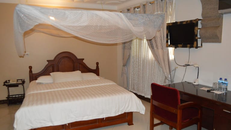 Das Super Paradise Hotel in Kampala bietet seinen Gästen eine komfortable Unterkunft am Stadtrand. Hier kannst du dich wie zu Hause fühlen und von Annehmlichkeiten wie einer Sauna, einem Fitnessraum und kostenlosem WLAN profitieren. Das Hotel verfügt auch über ein Restaurant, in dem köstliche Speisen serviert werden, sowie eine Bar/Lounge, in der du deine Durst löschen kannst. Ein kontinentales Frühstück ist im Preis inbegriffen. Das freundliche Personal an der rund um die Uhr besetzten Rezeption steht dir bei Fragen und Anliegen zur Verfügung. Kostenlose Parkplätze sind vorhanden.