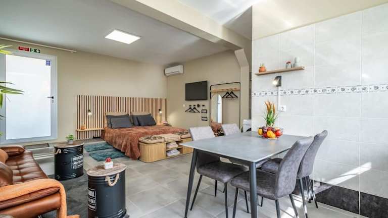 Die Ferienwohnung hat 1 Schlafzimmer und ist mit einem Flachbild-TV sowie einer Küchenzeile mit Kühlschrank und Ofen ausgestattet. Die Unterkunft bietet Annehmlichkeiten wie Klimaanlage und kostenfreies WLAN.