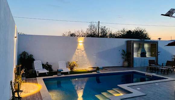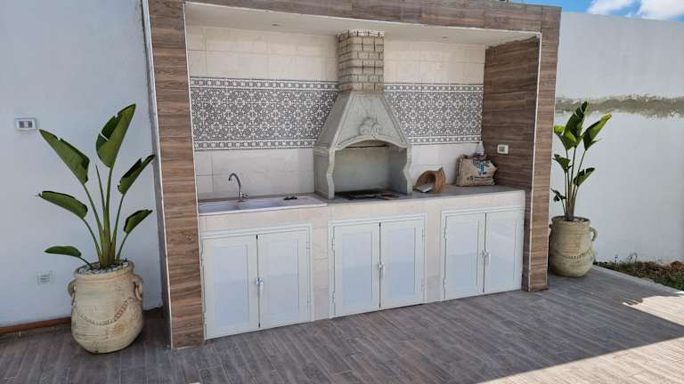Die Super villa midoun in Djerba ist eine ideale Unterkunft für einen erholsamen Urlaub. Mit einer eigenen Terrasse, einem privaten Pool und einem wunderschönen Garten bietet diese Villa alles, was Sie für einen unvergesslichen Aufenthalt benötigen. Das kostenfreie WLAN und der Poolblick sorgen für zusätzlichen Komfort und Entspannung. Die Villa ist gut ausgestattet mit klimatisierten Zimmern, einer voll ausgestatteten Küche und einem komfortablen Wohnzimmer. Das Anwesen verfügt über kostenfreie Privatparkplätze und liegt in der Nähe von Sehenswürdigkeiten wie dem Golfclub Djerba und dem Museum Lalla Hadria. Der internationale Flughafen Djerba-Zarzis ist nur 20 km entfernt.