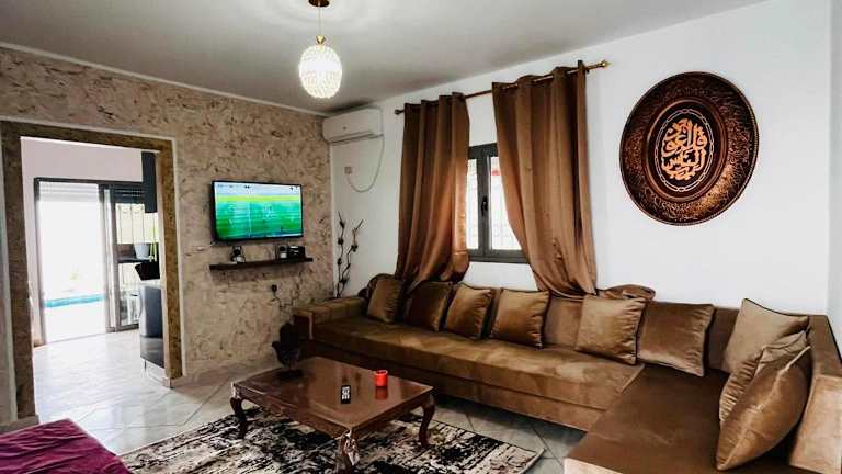 Die Super villa midoun liegt in Djerba und bietet eine günstige Lage, um die Umgebung zu erkunden. Der Golfclub Djerba ist nur 8,3 km entfernt und das Museum Lalla Hadria erreichen Sie nach 9,1 km. Der internationale Flughafen Djerba-Zarzis ist nur 20 km entfernt, so dass Sie schnell und bequem zu Ihrer Unterkunft gelangen können. In der Umgebung gibt es auch viele weitere Sehenswürdigkeiten und Aktivitäten, die Sie entdecken können.