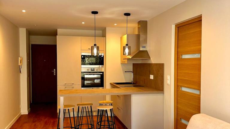 Die Ferienwohnung besteht aus einem Schlafzimmer, einem Wohnzimmer und einer gut ausgestatteten Küche, die mit einem Kühlschrank und einem Ofen ausgestattet ist. Zur Ausstattung gehören ein Flachbild-TV sowie kostenloses WLAN. Die Unterkunft bietet zudem Nichtraucherzimmer und einen privaten Parkplatz, der kostenlos zur Verfügung steht.