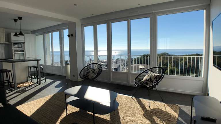 Das Superbe appartement avec une vue mer panoramique ist eine Ferienwohnung mit einem atemberaubenden Meerblick. Die Unterkunft bietet Annehmlichkeiten wie kostenfreies WLAN und kostenlose Parkmöglichkeiten.