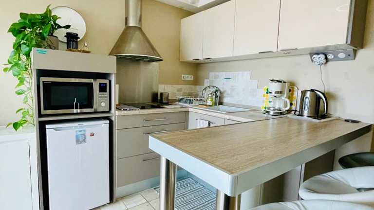 Das Apartment im Superbe appartement en bord de mer bietet Ihnen ein komfortables Wohnambiente mit einem Schlafzimmer, einem Wohnzimmer und einer Terrasse mit Stadtblick. Zur Ausstattung gehören ein Flachbild-TV, eine voll ausgestattete Küchenzeile mit Kühlschrank und Geschirrspüler sowie ein Badezimmer mit Dusche. Handtücher und Bettwäsche werden gestellt, sodass Sie sich um nichts kümmern müssen.