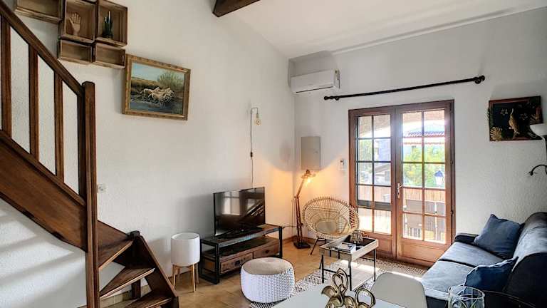Das klimatisierte Apartment im Superbe Duplex aux Saintes terrasse plein sud 3*** verfügt über 1 Schlafzimmer, einen Flachbild-TV und einen gemütlichen Wohnbereich. Die Küche ist voll ausgestattet mit einem Kühlschrank und einem Essbereich, sodass Sie Ihre eigenen Mahlzeiten zubereiten können. Handtücher und Bettwäsche stehen Ihnen gegen Aufpreis zur Verfügung, um Ihren Aufenthalt noch angenehmer zu gestalten.