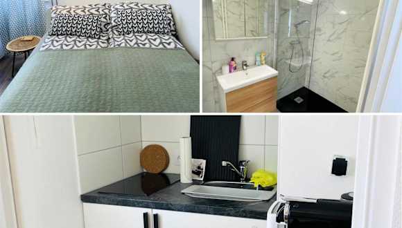 Die Ferienwohnung verfügt über ein Schlafzimmer sowie eine voll ausgestattete Küche, die mit einem Kühlschrank und einer Mikrowelle eingerichtet ist. Des Weiteren umfasst die Unterkunft ein Badezimmer mit Dusche und kostenlosen Pflegeprodukten. Handtücher und Bettwäsche werden bereitgestellt.